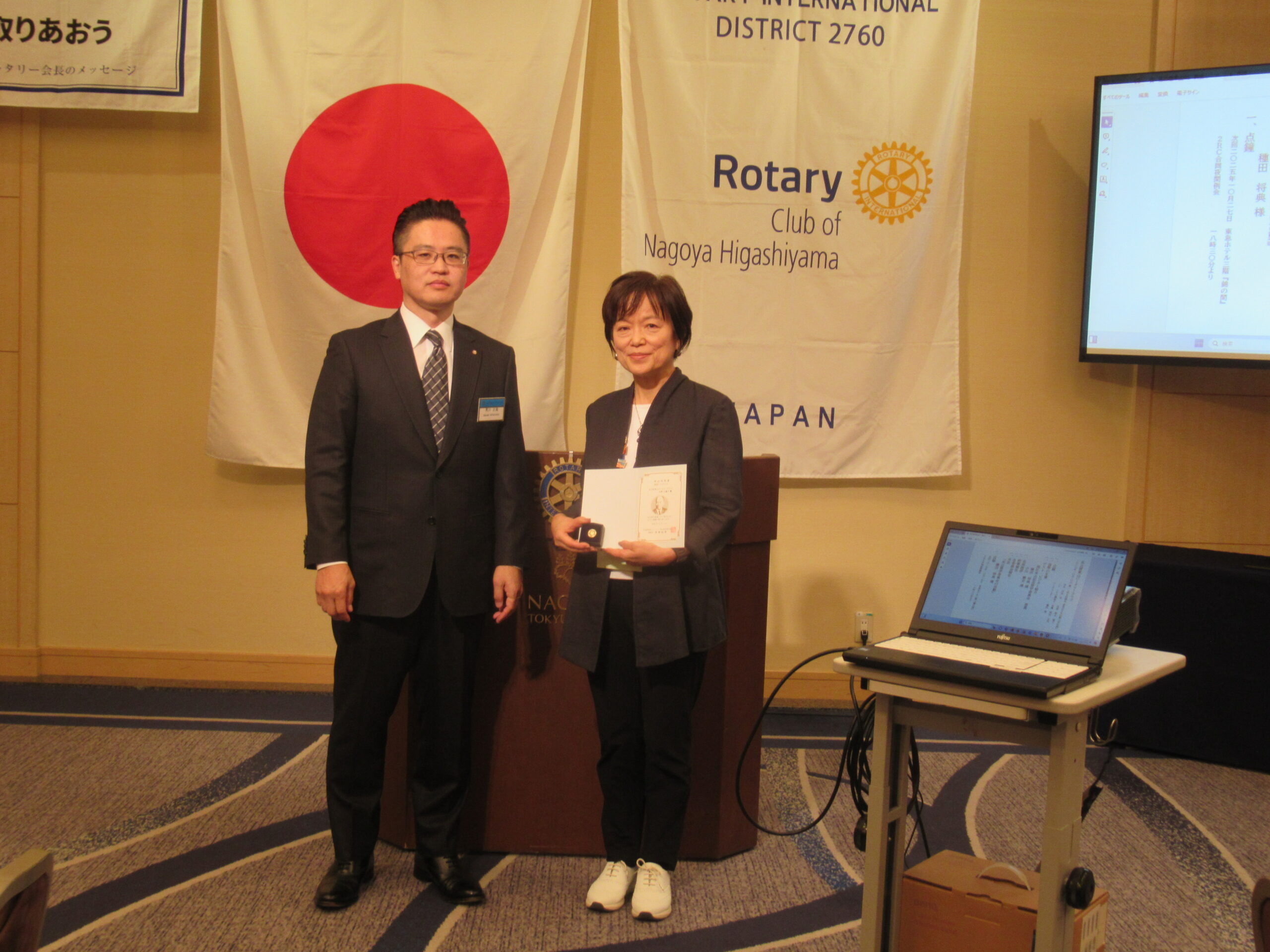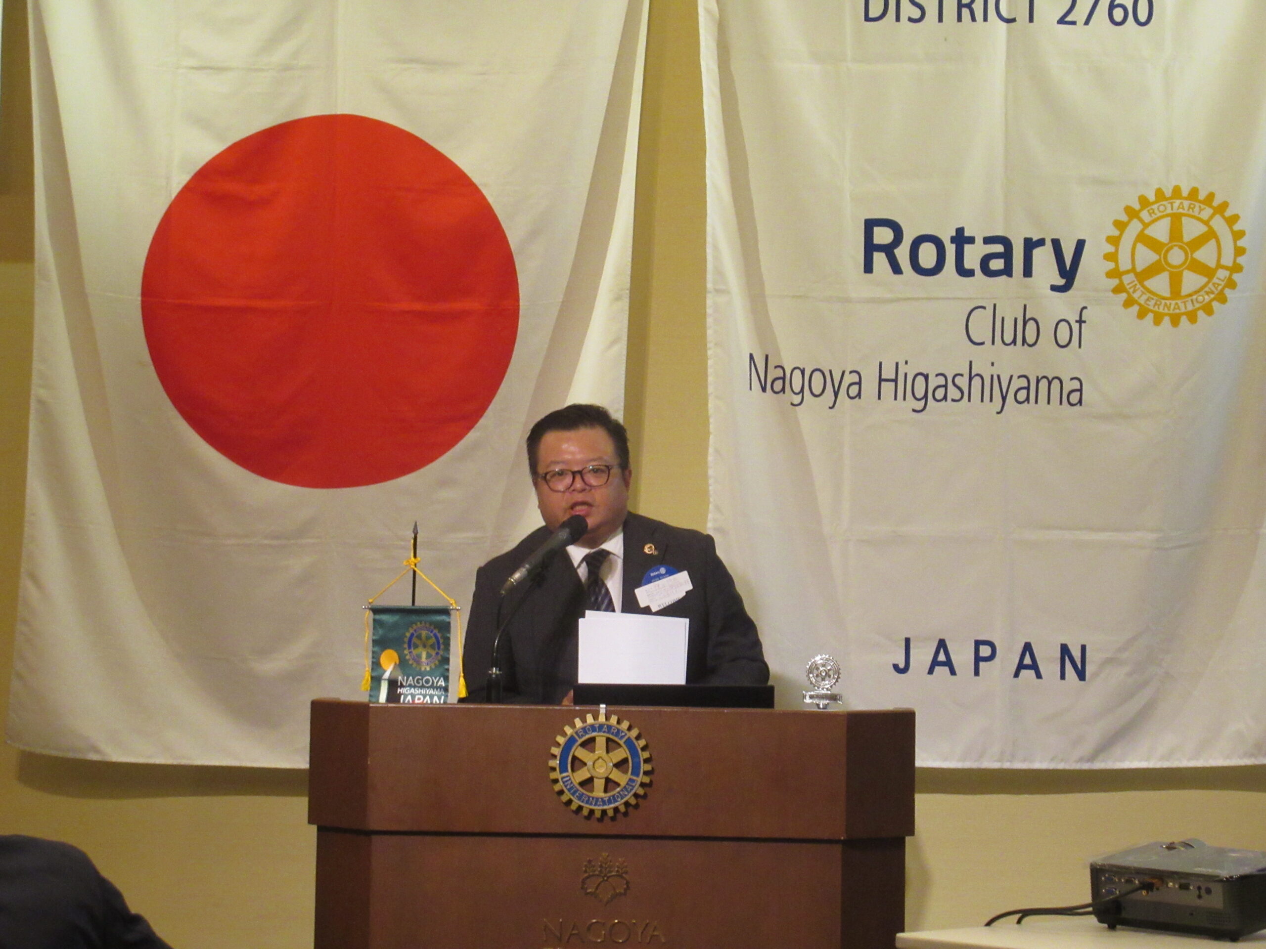 通常例会 卓話:「地区米山奨学委員会の活動」 地区米山奨学委員会 委員 種田 将典様(名古屋北RC)