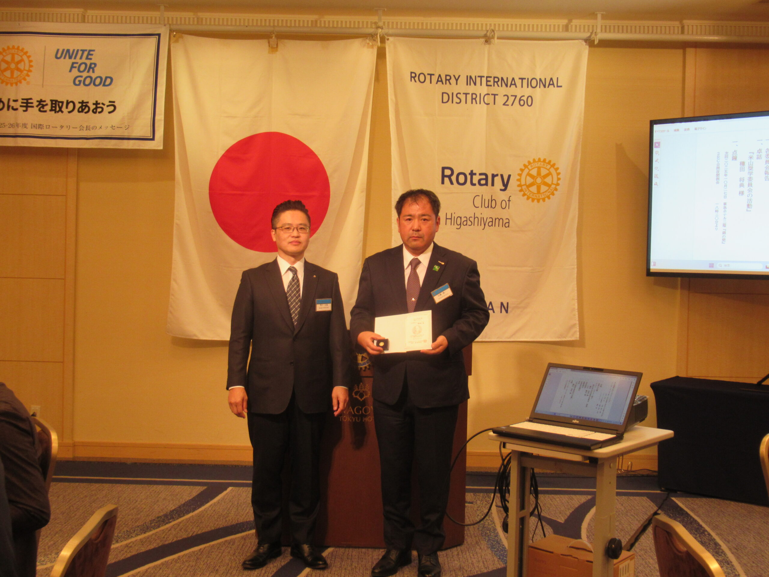 種田様におかれましては後ほど米山記念奨学委員会の卓話をよろしくお願い致します。