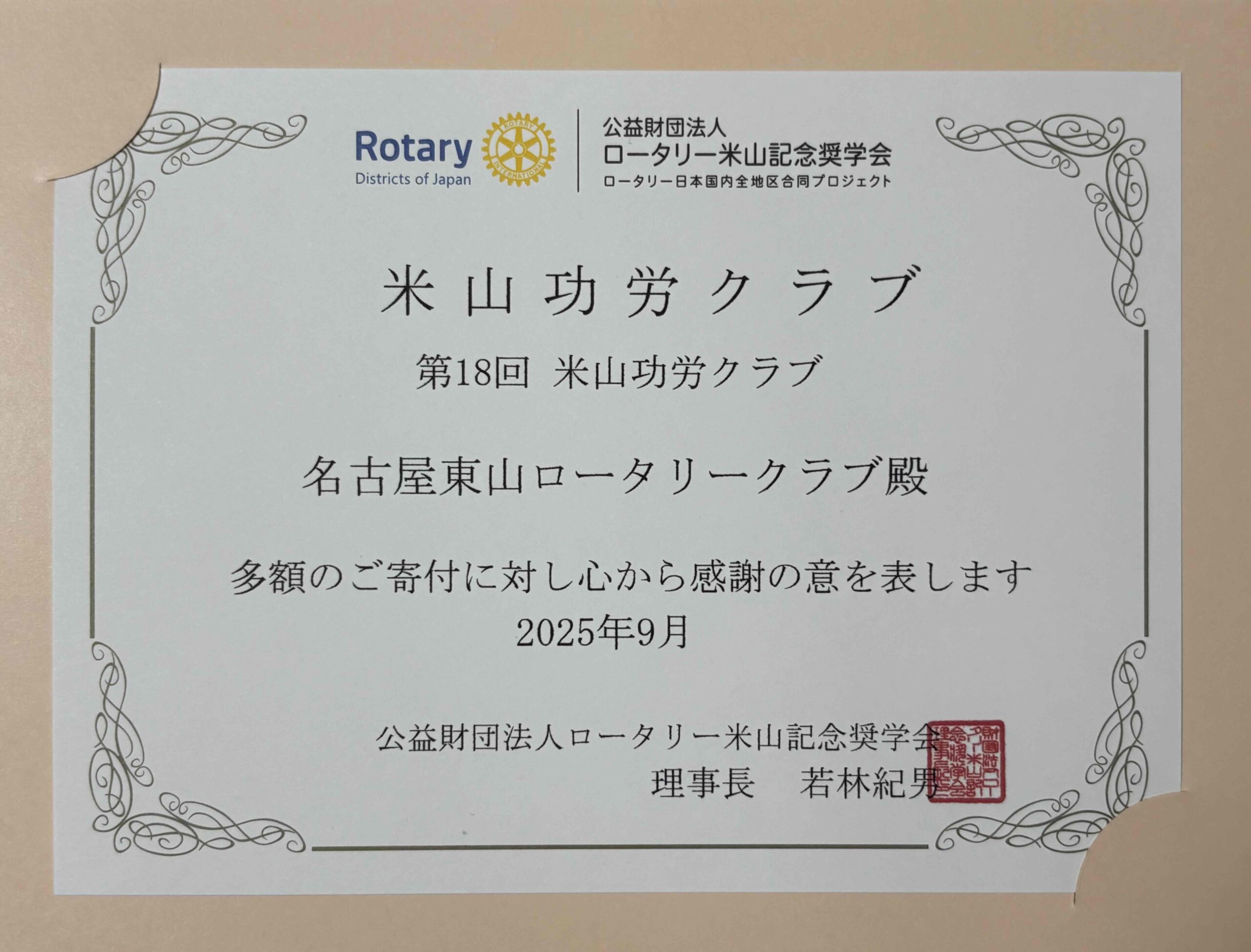 米山奨学会は皆さんの善意により成り立っていますので、クラブで奨学生を受け入れるとともに、普通寄付金だけでなく特別寄付金へのご協力もよろしくお願い致します。